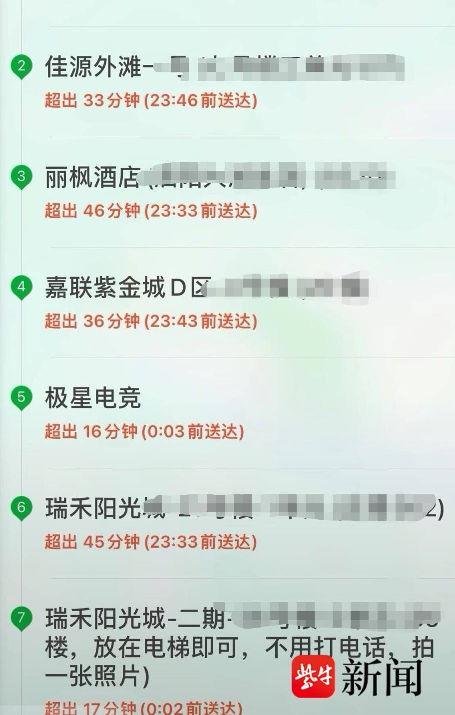 “一单超时,就意味着下一单也会超时。”一个骑手向记者分享自己2月21日晚上送出的餐全部超时,一共7单,最慢的超时了46分钟,最快的也超时了16分钟。此时,这些餐还没有送到顾客手里,也就是说,实际的超时时间远不止这些。