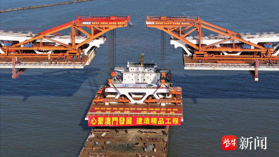 扬子晚报网3月18日讯(通讯员刘昊 记者石小磊)3月18日上午11时,由中铁宝桥扬州公司参建的澳氹第四条跨海大桥南主桥合龙仪式在桥位现场隆重召开,至此,澳门首条双向八车道跨海大桥、粤港澳大湾区关键陆路通道全线贯通。