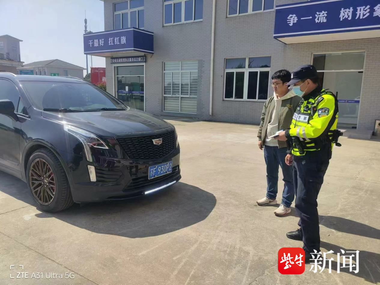 3月25日12时许,南通交警高速三大队民辅警杨烨、秦舒在G15沈海高速如皋服务区定点执勤时,发现一辆黑色SUV车头加装有LED远光大灯,当即将其拦停并对违规加装的LED远光大灯进行了强制拆除和收缴,并依法对司机张某处罚款500元的处罚。