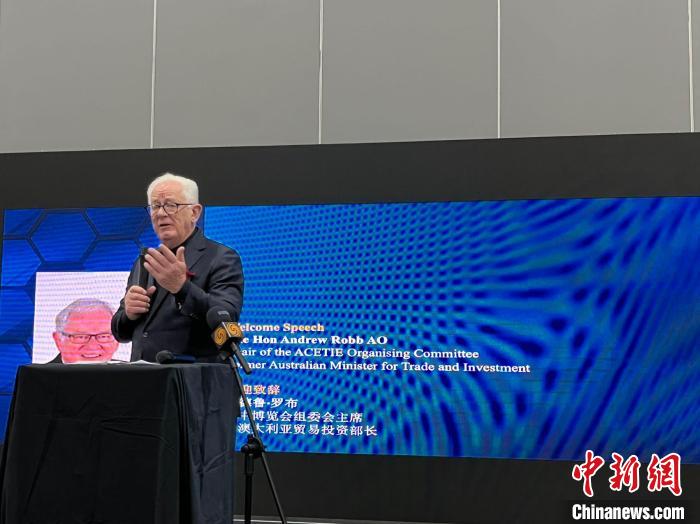 当地时间9月19日,以“高科技与新能源赋能美好生活”为主题的2024澳中博览会在澳大利亚墨尔本会展中心隆重开幕。澳中博览会组委会主席、前澳大利亚贸易与投资部长安德鲁·罗布在致辞强调了澳中关系中互补互惠的特点。李伟 摄