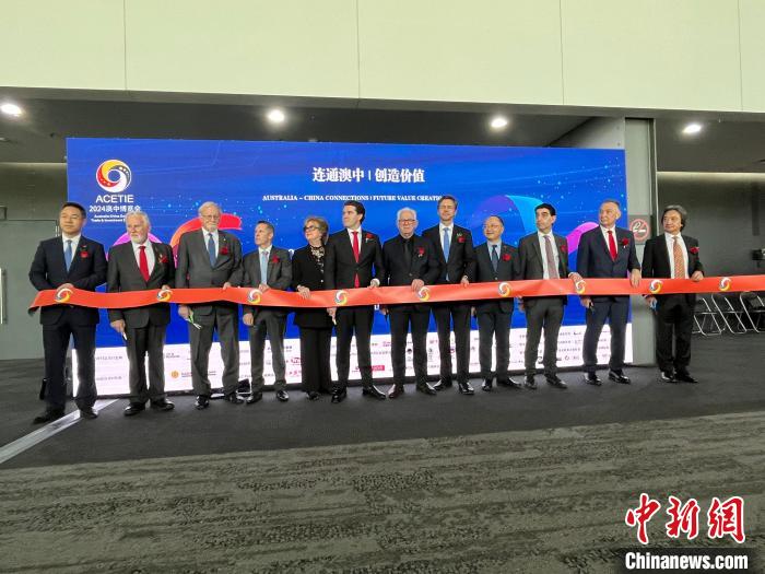 当地时间9月19日,以“高科技与新能源赋能美好生活”为主题的2024澳中博览会在澳大利亚墨尔本会展中心隆重开幕。图为澳中博览会的剪彩仪式。李伟 摄