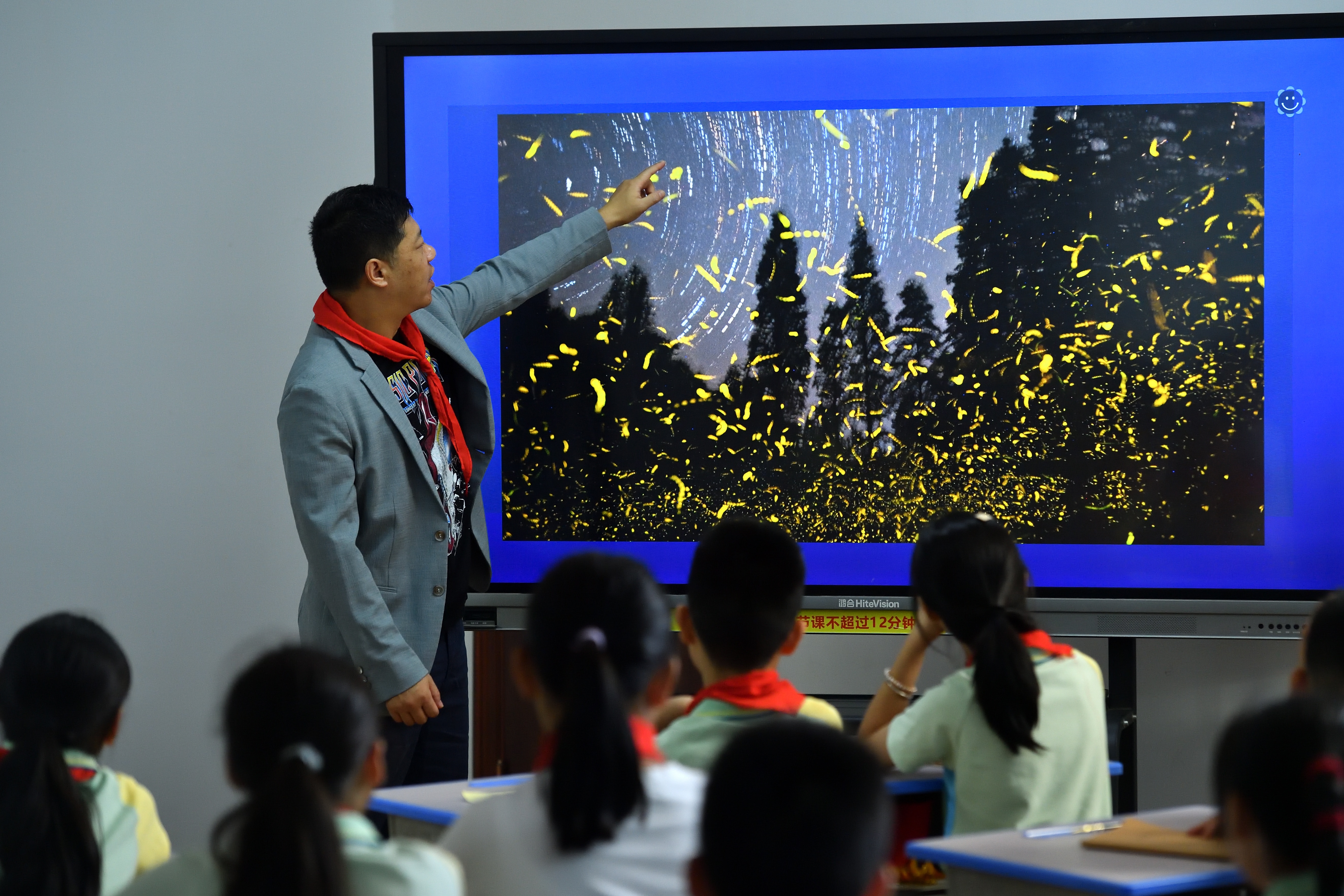 在学校的智慧教室里,华中农业大学的“萤火虫教授”付新华给孩子们带来了一堂关于萤火虫的科普课。黄土咀的孩子们第一次听说,这些夏夜里星星点点的小飞虫,是生态健康的重要指标;第一次通过视频得知,蜘蛛会用“杀猪盘”对萤火虫进行“网络诈骗”进行捕食。