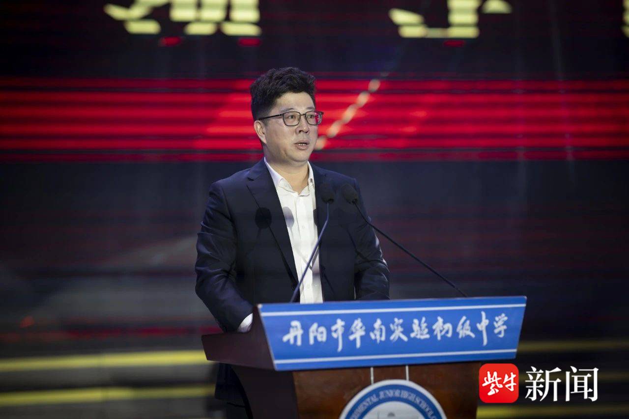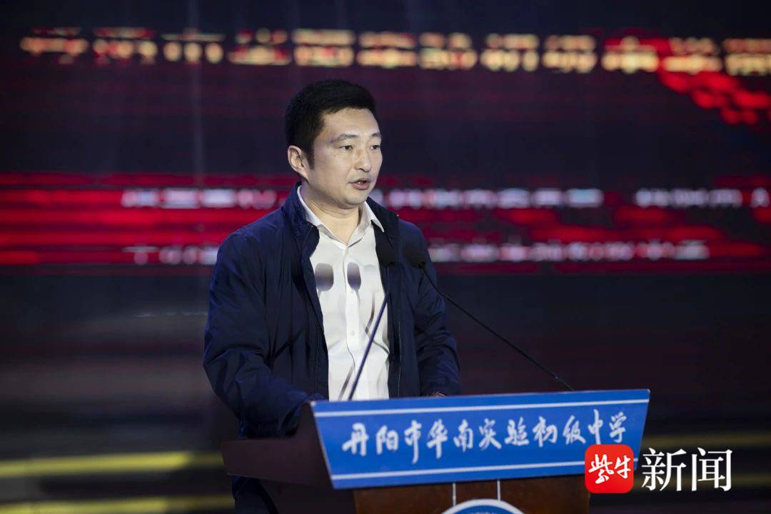 丹阳市华南实验初级中学校长吴云致辞,他讲述了学校二十年深耕主业,二十年蓬勃发展的光辉历程。二十年以来,丹阳华校人拼搏进取、自强不息,共同参与了丹阳教育迭代升级、步步攀高的高品质发展过程。吴云诚望本次大会以校史明志,启鉴后人,铭前辈苦功,担未来重任,拓教育新境,育时代新人!