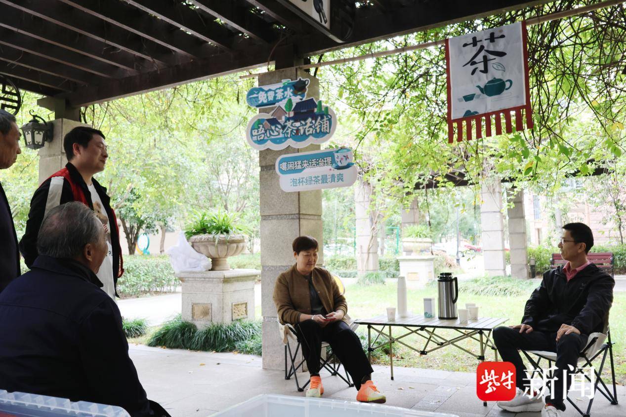 每周六的垃圾回收日,也是“唔心茶话铺”的营业日。一方小桌、几张板凳、几杯热茶,社区书记、居委干部定期出摊,为前来歇脚的居民送去免费茶水。在氤氲茶香中,居民们围坐一堂,或是围绕垃圾分类、社区安全、文明创建等话题畅所欲言,共议社区治理;或是开展板凳课堂,党的理论、法律普及、政策宣传轮番开讲。“这样的形式真好,我们不仅在家门口就出了闲置,还能喝茶歇脚说飞(聊天),了解社区动态,当面提意见,这楼道里清爽了,话也说开了,我人也更有归属感了。”前来喝茶的温阿姨说道。