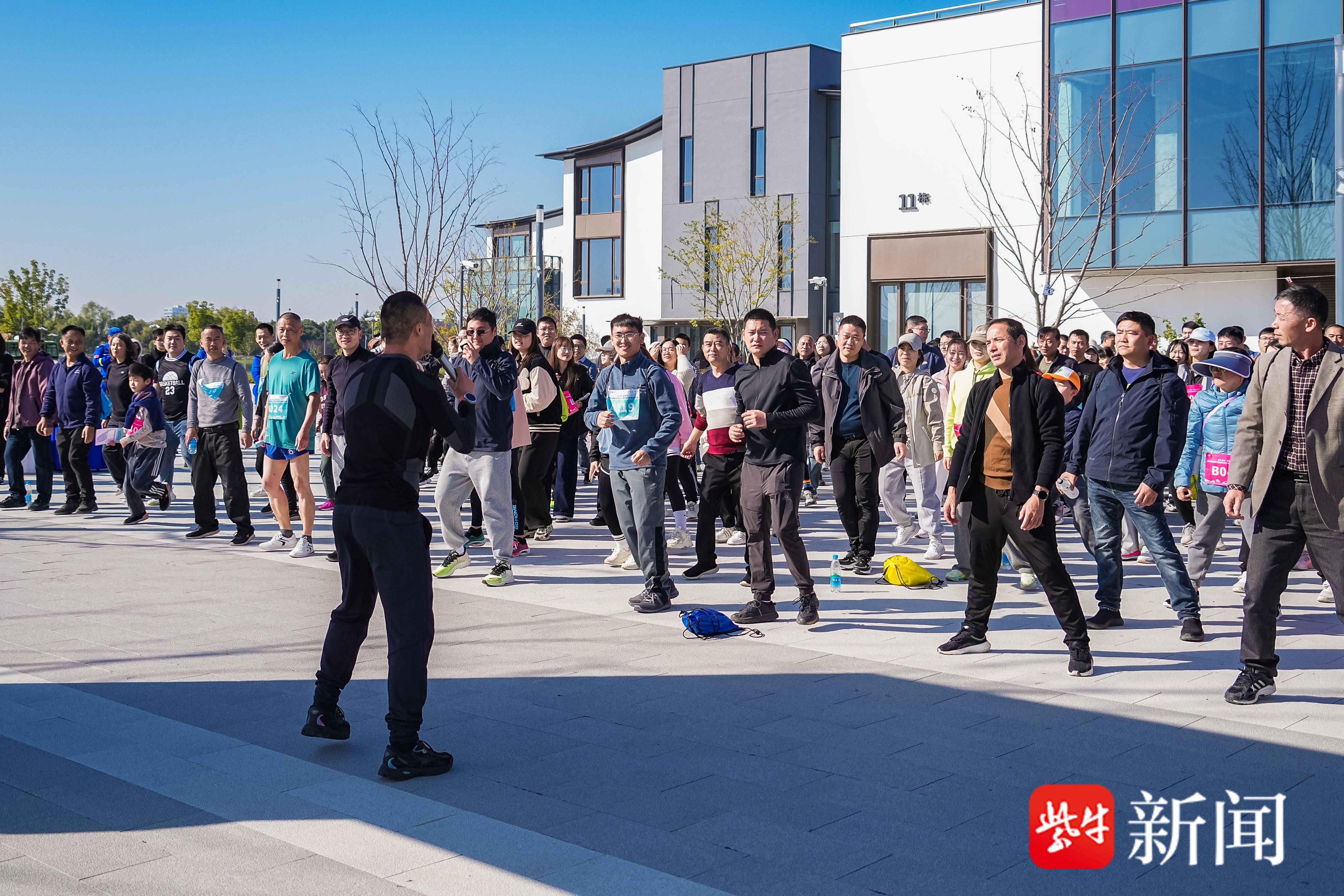 比赛正式开始前专业教练为大家进行了热身指导分享健步走的正确姿势和呼吸方法确保大家的安全。温暖的阳光洒在虎丘湿地公园的步道上,起跑处早已人声鼎沸,选手们身着运动装备精神饱满地等待,随着响亮的枪声划破长空,大家迈出了健步走的第一步。